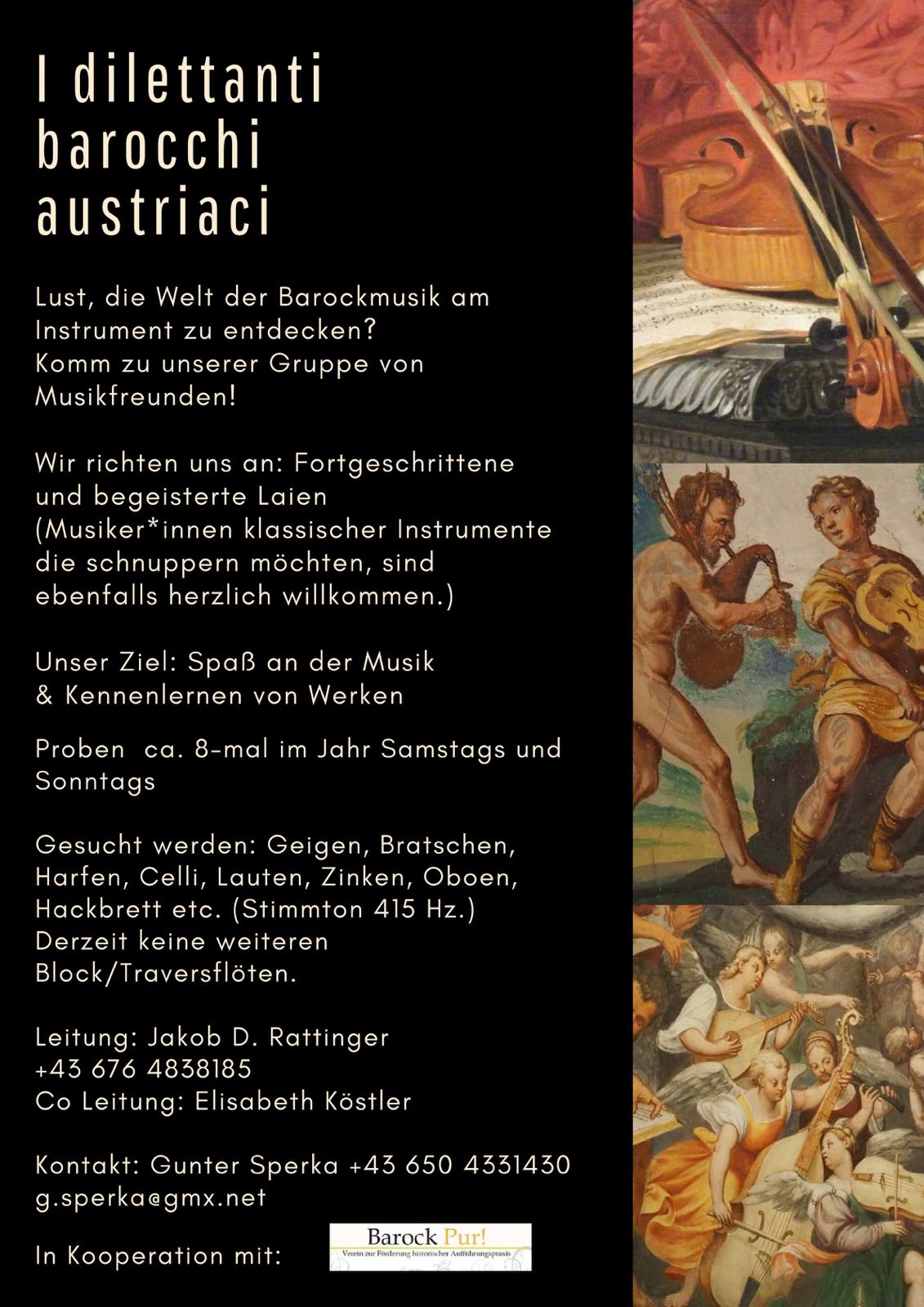 Die Traversflöten- und Cembaloplätze sind ausgebucht - nur noch Restplätze für Streicher*innen (Geigen, Bratschen) und Continuo (Theorben, Gamben, Violone…) vorhanden.